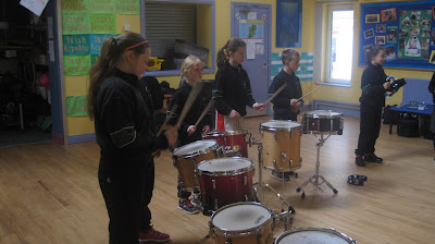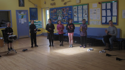 Tháinig Shay Lally ón 'Mobile Music School' le déanaí chuig cór agus ceolfhoireann na Gaelscoile chun taispeántas a thabhairt de chnag uirlisí. Bhain na páistí lán taitneamh as an gceardlann. Sheinneadar drumaí, agógó, tambóirín agus sreang dhruma.