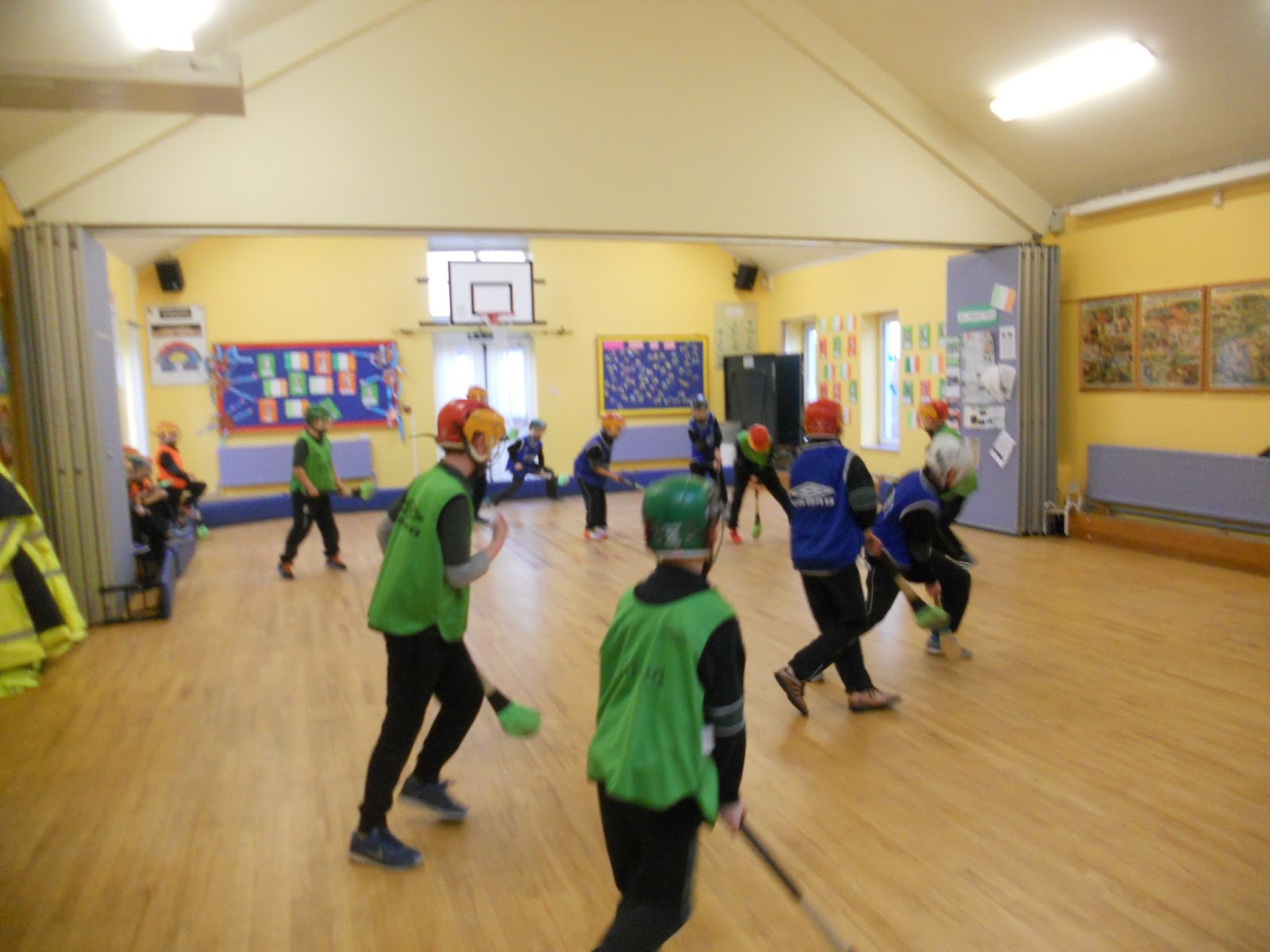 Do ghlac buachaillí ó rang a trí is rang a ceathair páirt i gcomórtas iomána fé dhíon i nDún ar Aill le linn Feabhra is Márta. Thraenáileadar go díograiseach gach seachtain ón Nollaig, is chuireadar taispeántas maith iomána ar siúl le linn na gcomórtaisí. Bhí foireann na scoile brodúil as a gcuid iarrachta cróga ar an gcúirt, is as an iompar is comhoibriú a bhí thar barr ar fad. I measc na hiománaithe bhí Jeaic, Adam, Jeaic, Dónal, Sam, Dylan, Pádraig, Liam, Daithí, Seaghan, Peaidí, Eoghan, Pádraig, Risteard agus Cathal ó rang a trí. D’imir Eoghan, Liam, Bilí, Deaglán, Liam, Conchúr, Micheál, Jamie, Donncha, Pádraig agus Darragh ar son ranga a ceathair. Molaimid go hard na luthchleasaithe óga san.